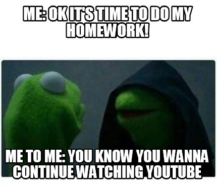 Meme Maker - ME: ok IT'S TIME TO DO MY HOMEWORK! me to me: you know ...